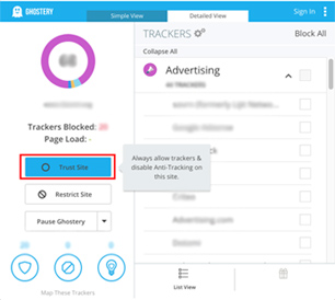 - Klik op ‘Op witte lijst plaatsen' of op 'trust site'.